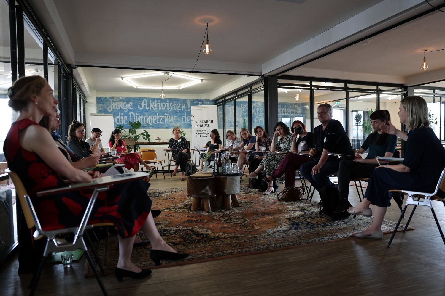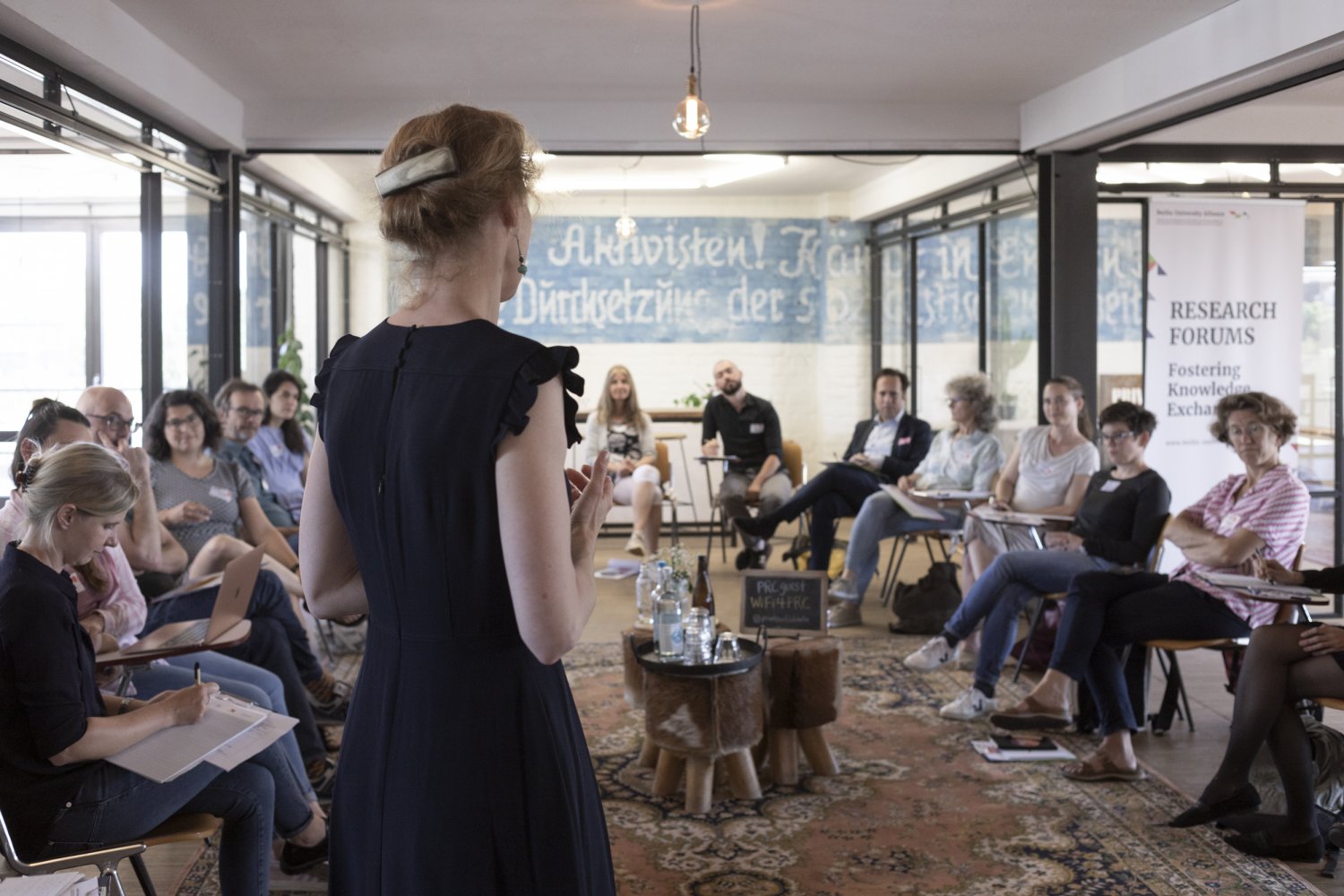 Das Team der Maßnahme Research Forum Global Health (Objective 2) hat Vertreter*innen aus den Bereichen Kunst und Kultur, organisierter Zivilgesellschaft, Politik und Verwaltung, Wirtschaft und Wissenschaft zu Themensprints eingeladen und sie getrennt voneinander gefragt, was aus deren Sicht die aktuellen Herausforderungen von Urban Health in Berlin sind. Dazu fand pro Bereich jeweils ein eintägiger Themensprint im Private Roof Club an der Oberbaumbrücke statt, die professionell moderiert wurden. Alle Themensprints waren nach demselben Muster aufgebaut: