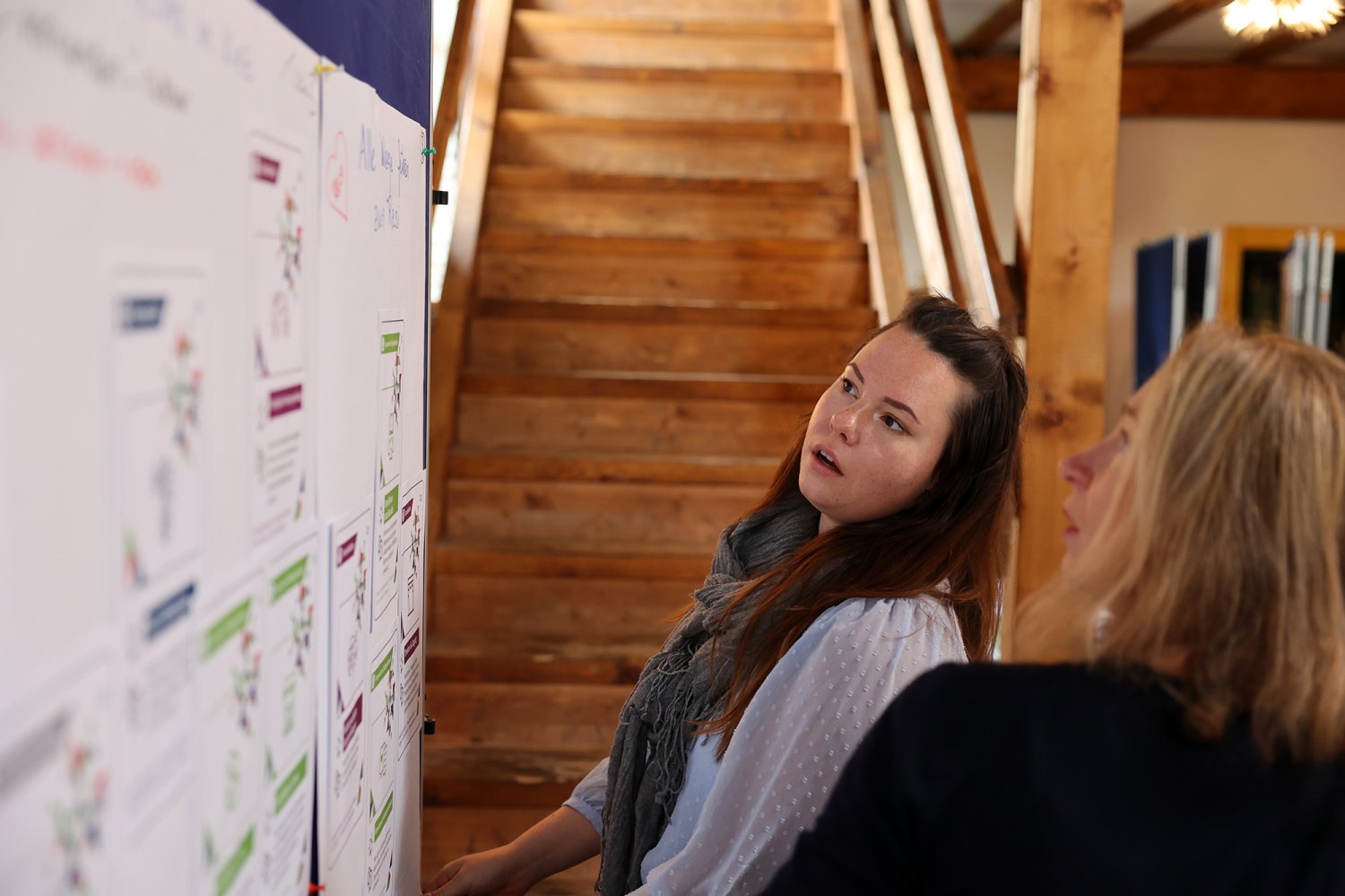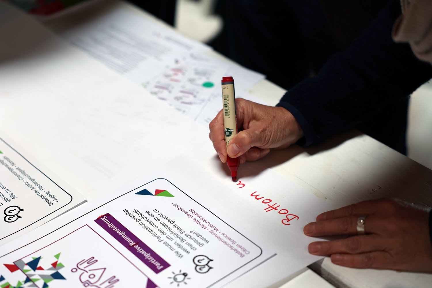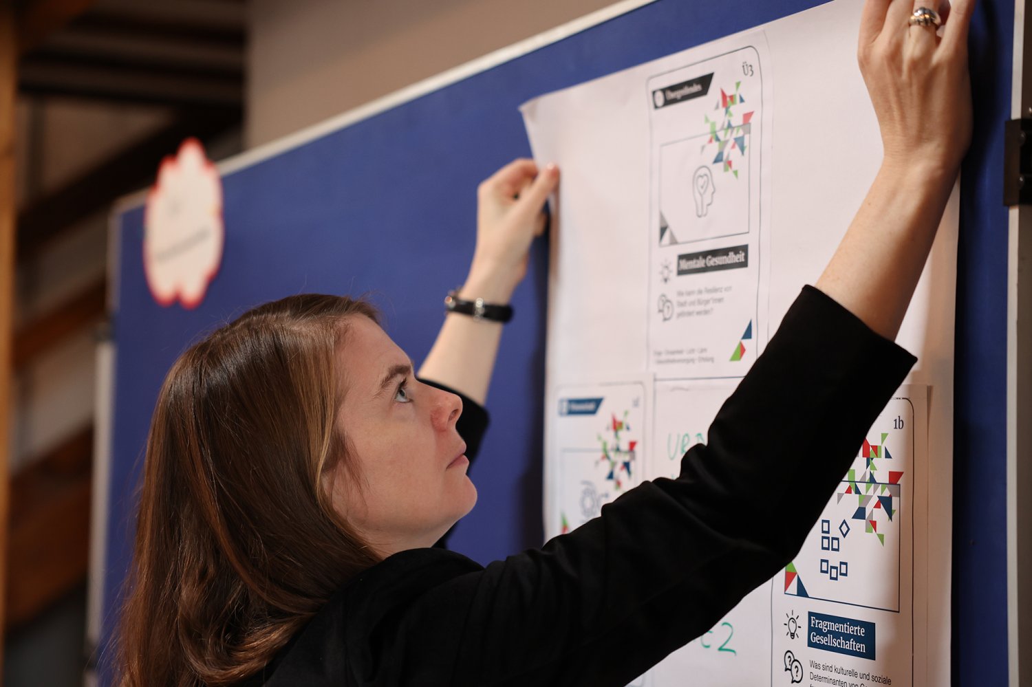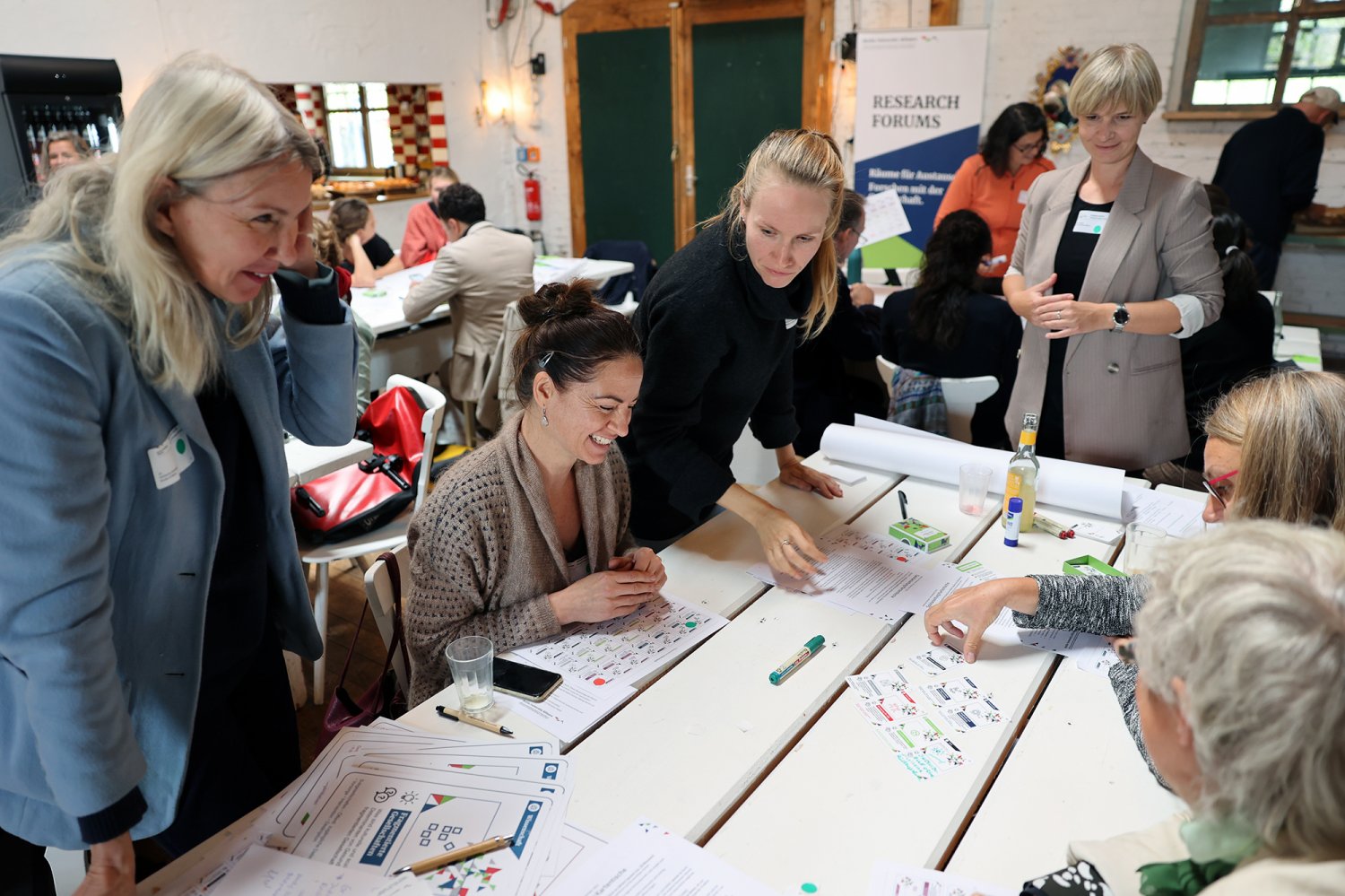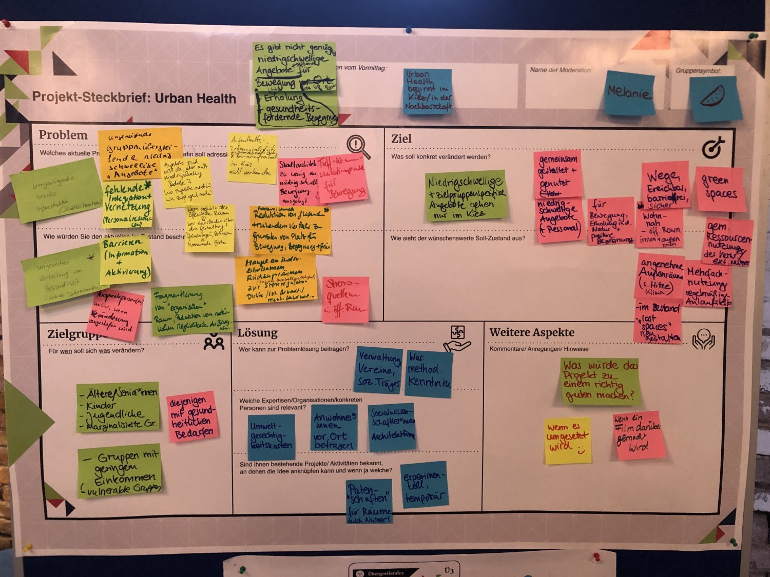 Das Kartenset Urban Health bildete methodisch die Grundlage für den intensiven Wissensaustausch auf dem ‚Markt der Themen‘. Die 52 Teilnehmenden wurden an Kartentischen eingeladen, neue Themenkombinationen zu legen, zu diskutieren und auszuhandeln. Das Spielen, als kreativer Ansatz um zu neuen Perspektiven und Ideen zu gelangen, wurde von den Teilnehmenden äußerst positiv aufgegriffen. Im zweiten Schritt wurden die erarbeiteten Themenkombinationen mittels Projektsteckbriefen geschärft. Mindestens fünf Projektideen werden nun auf dem anstehenden ‚Markt der Partnerschaften‘ am 23. November 2022 vertieft (Phase 4) – mit dem Ziel, konkrete transdisziplinäre Umsetzungsprojekte zu Urban Health in Berlin zu initiieren.