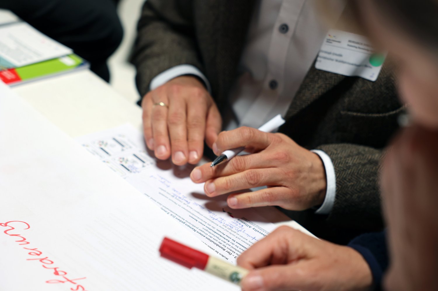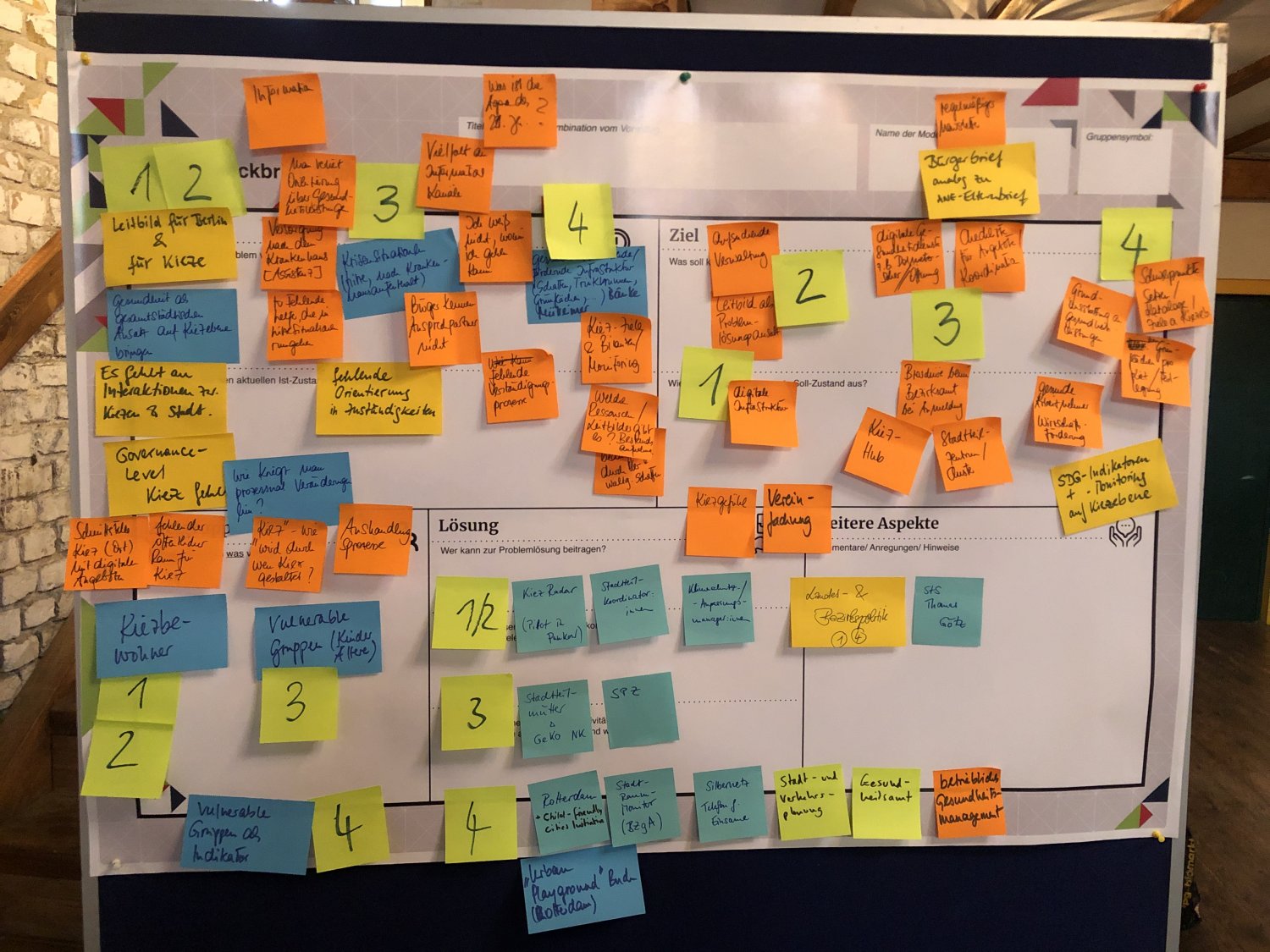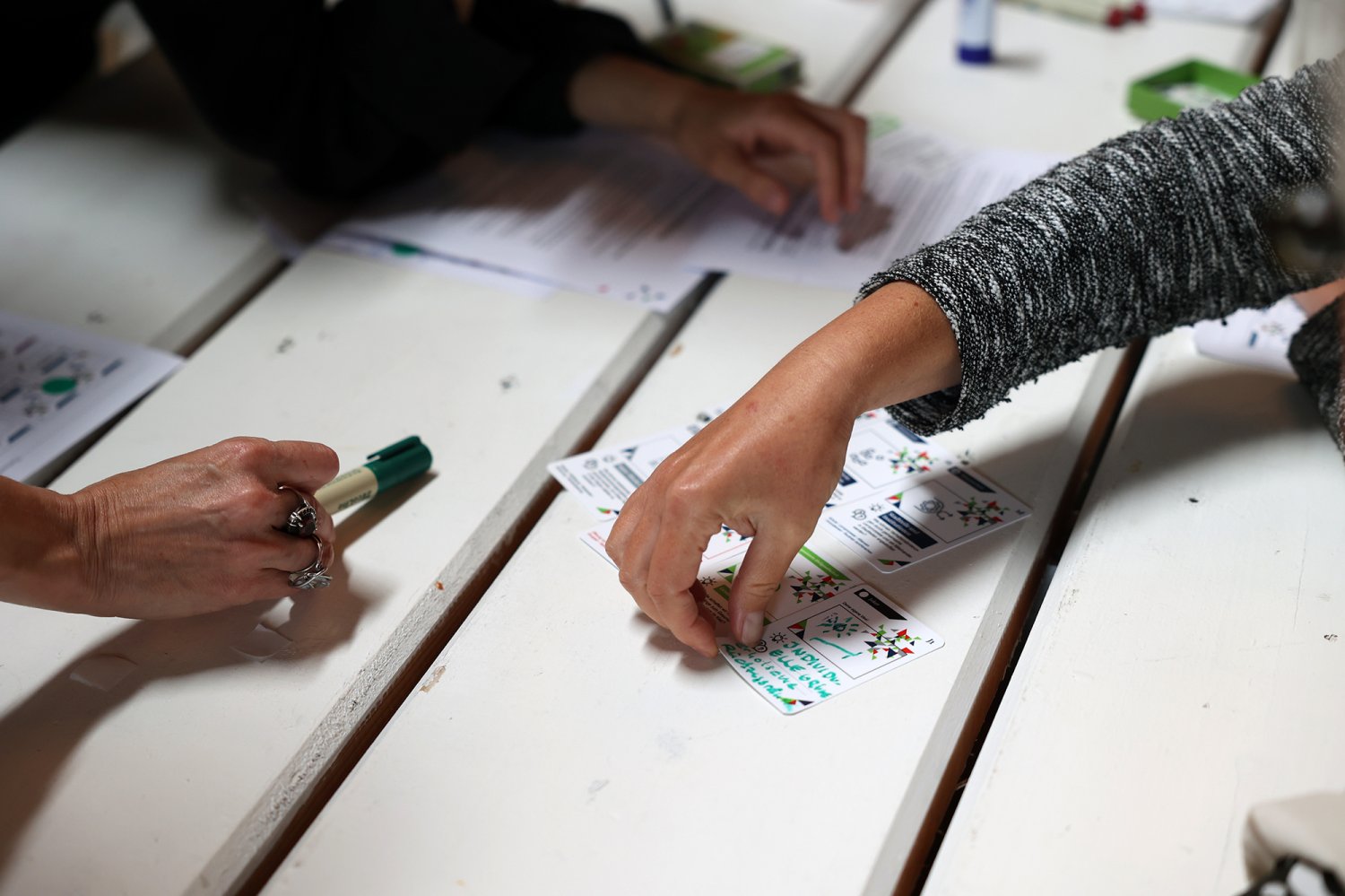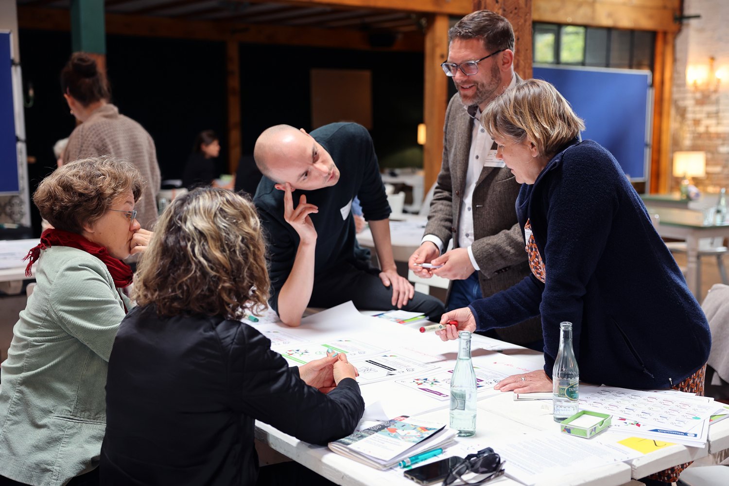 Das Kartenset Urban Health bildete methodisch die Grundlage für den intensiven Wissensaustausch auf dem ‚Markt der Themen‘. Die 52 Teilnehmenden wurden an Kartentischen eingeladen, neue Themenkombinationen zu legen, zu diskutieren und auszuhandeln. Das Spielen, als kreativer Ansatz um zu neuen Perspektiven und Ideen zu gelangen, wurde von den Teilnehmenden äußerst positiv aufgegriffen. Im zweiten Schritt wurden die erarbeiteten Themenkombinationen mittels Projektsteckbriefen geschärft. Mindestens fünf Projektideen werden nun auf dem anstehenden ‚Markt der Partnerschaften‘ am 23. November 2022 vertieft (Phase 4) – mit dem Ziel, konkrete transdisziplinäre Umsetzungsprojekte zu Urban Health in Berlin zu initiieren.