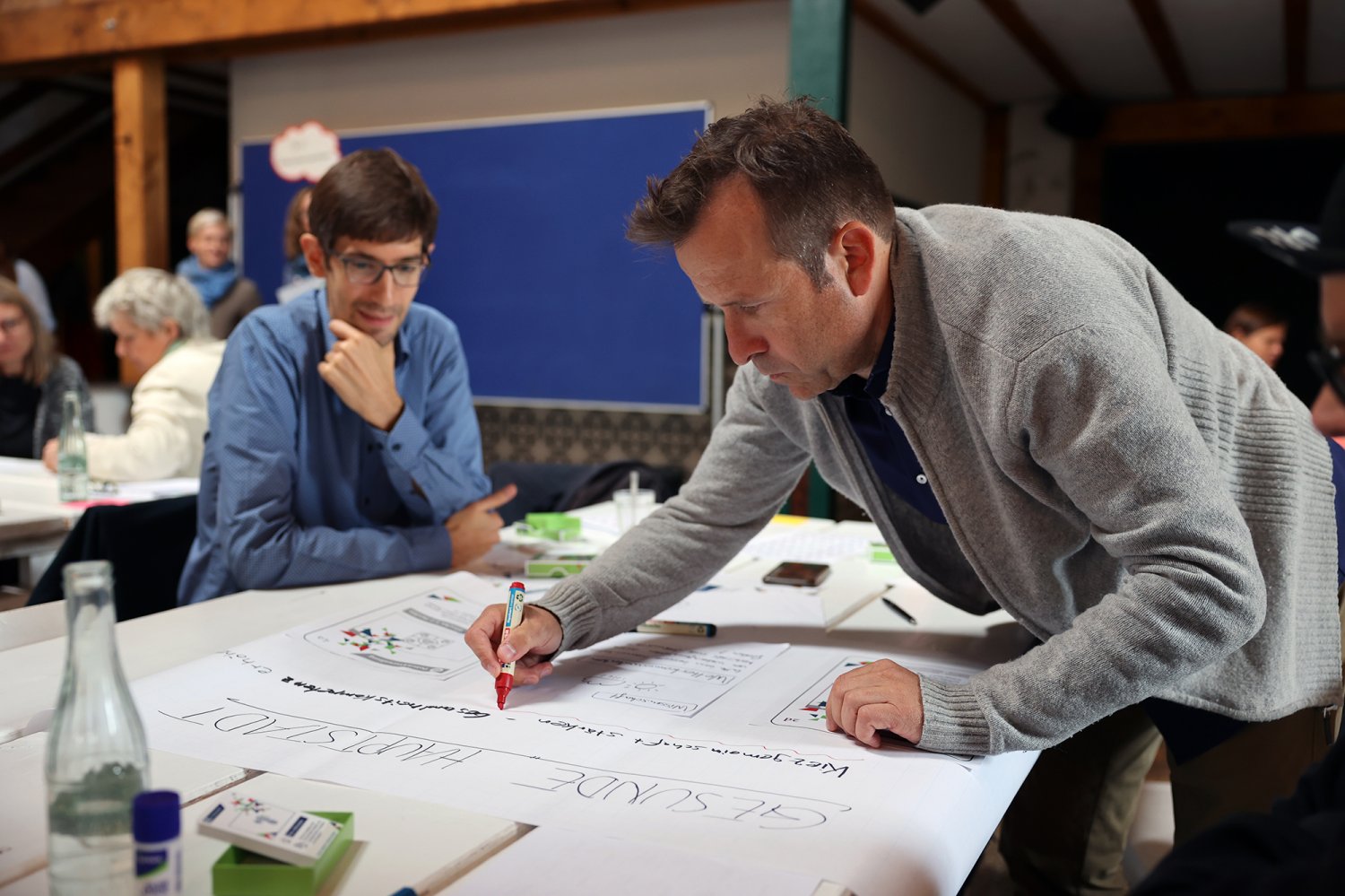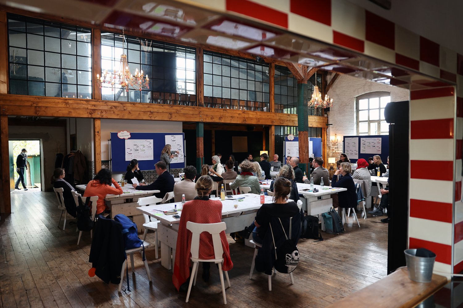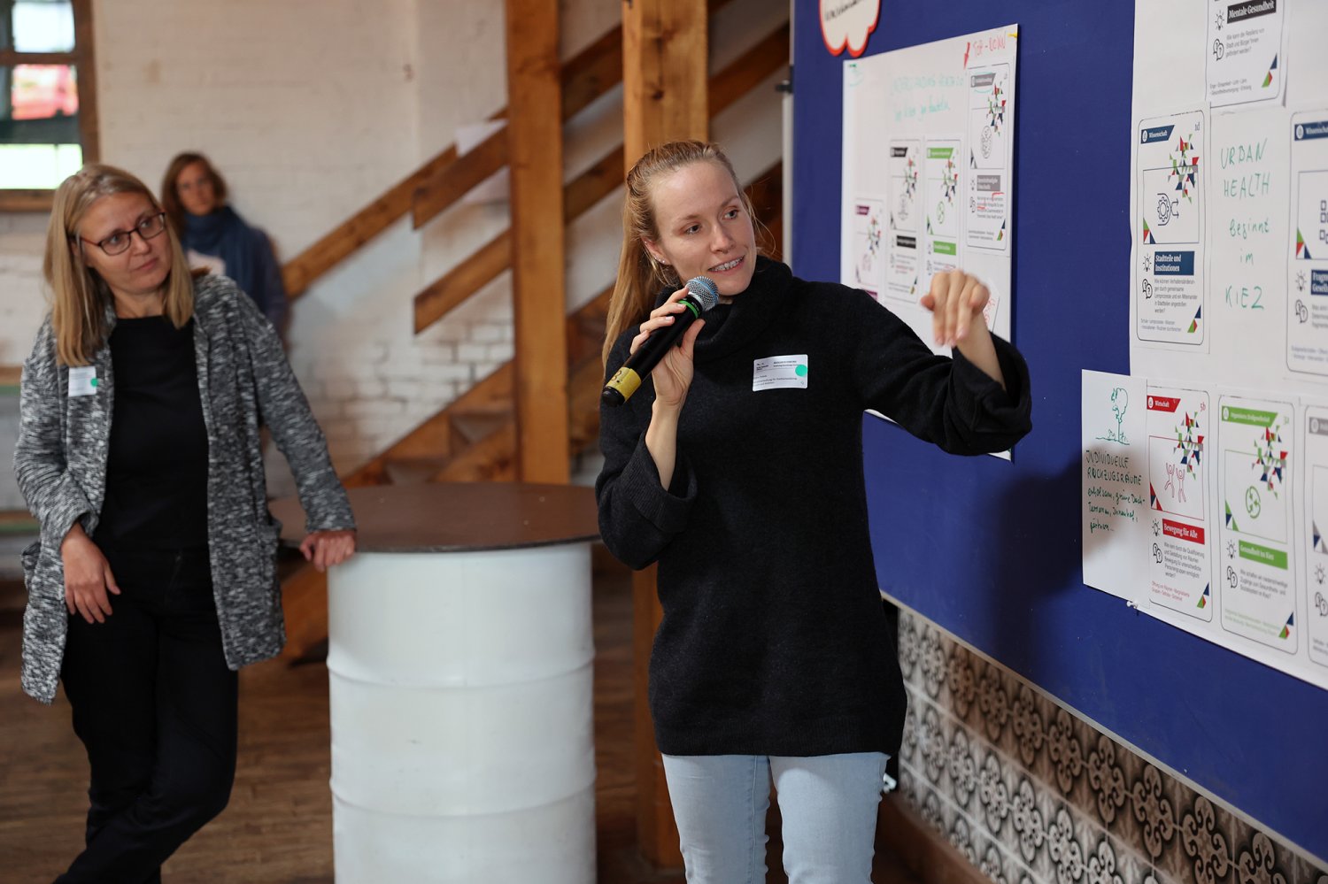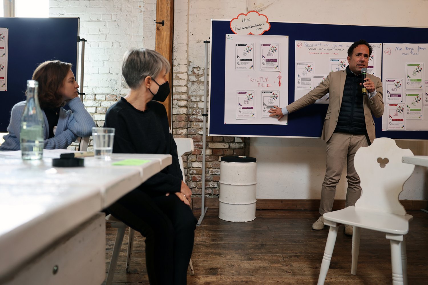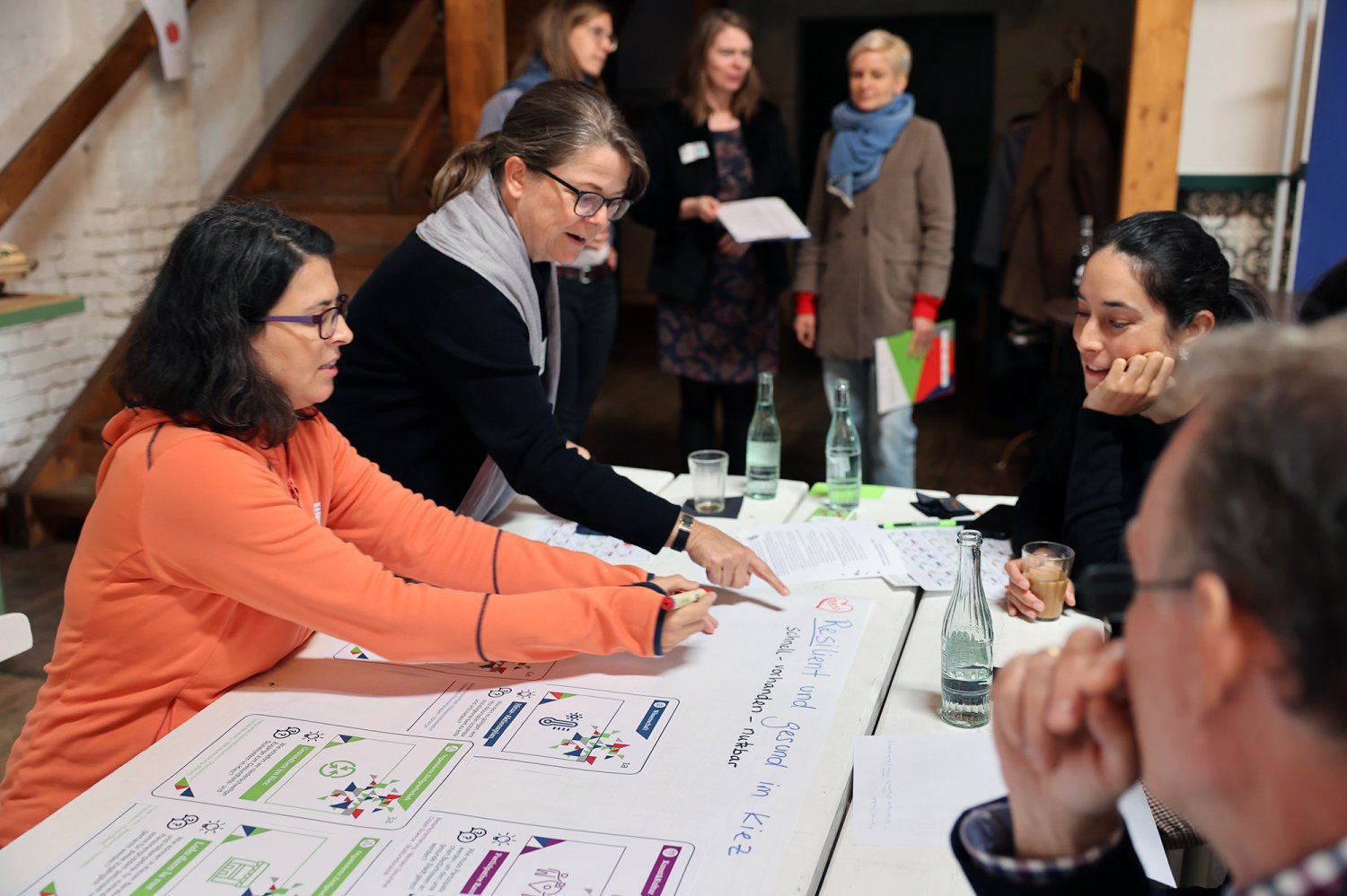 Endlich war es soweit: Nachdem im Juni bereits in fünf Themensprints Vertreter*innen aus den Bereichen Kunst & Kultur, organisierte Zivilgesellschaft, Politik & Verwaltung, Wirtschaft sowie Wissenschaft die aus ihrer jeweils bereichsspezifischen Perspektive drängenden Herausforderungen von Urban Health in Berlin definiert haben, lernten sich am 28. September 2022 alle Vertreter*innen der fünf Bereiche auf dem ‚Markt der Themen‘ kennen. Nicht nur die Teilnehmenden lernten sich kennen – was ein wesentliches Ziel der Themenwerkstätten ist – sondern sie lernten nun auch ihre Ergebnisse aus den jeweiligen Themensprints kennen. Insgesamt 18 Herausforderungen und erste Lösungsansätze für Urban Health in Berlin wurden in den Themensprints formuliert, die in das Kartenset Urban Health mündeten.